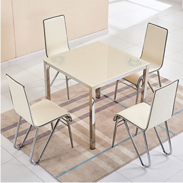 Modern Tempered Glass Dining Room Sets With Powder Coating Counter Tops dining table set with pu chairs Images |