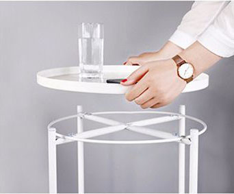 Our round accent table has removable tray,it can be used as serving tray around your home.and it is easy for your storage with plug-in structure ,no screws and tools needed for assemble